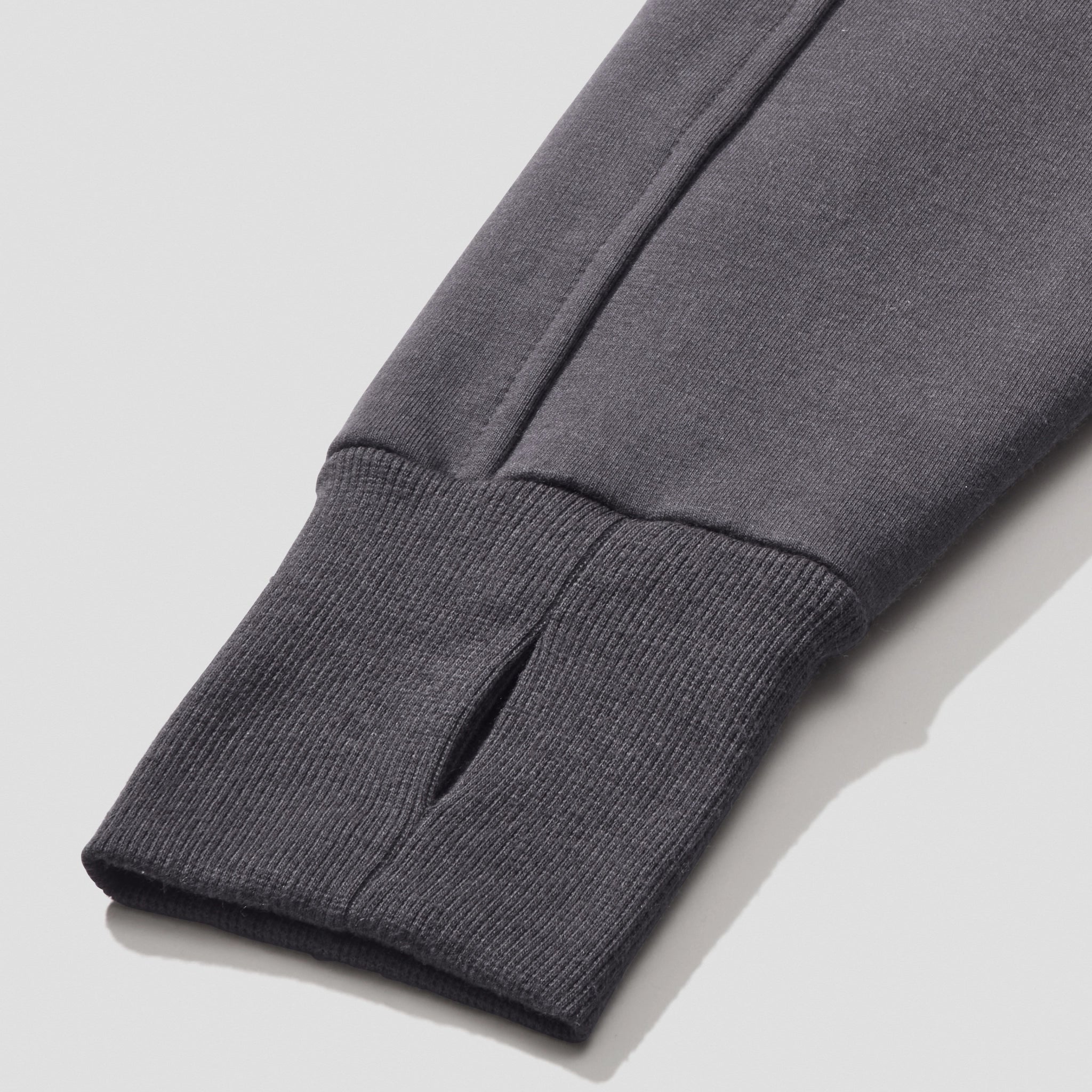 Elongated ribbed cuff with thumb hole to keep hands warmer